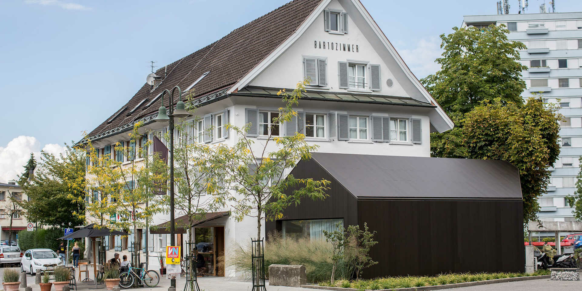 Das Kon­zept BAR10ZIMMER beruht auf einer sehr char­man­ten Ein­heit zwi­schen einem klei­nen Hotel und einer Bar mit moder­nem mini­ma­lis­ti­schem Inte­ri­eur. Die zen­tra­le Lage im Her­zen Dorn­birns lädt ein, sich unge­zwun­gen mit Freun­den in dem lie­be­voll reno­vier­ten his­to­ri­schen Gebäu­de kuli­na­risch ver­wöh­nen zu lassen.